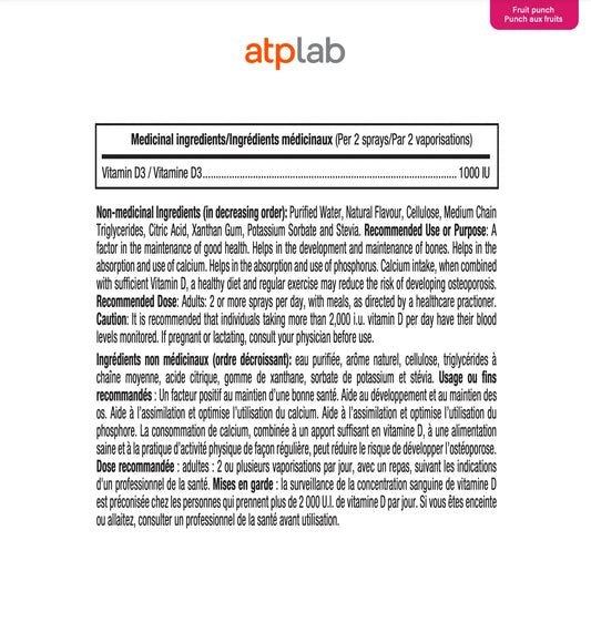 Vitamin D3 Spray – 1000 IU | Fruit Punch | ATP Lab | 52 ml
