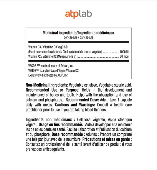 Vitamin D3 + K2 – ATP Lab | Vegan Bone & Calcium Formula | 60 Capsules