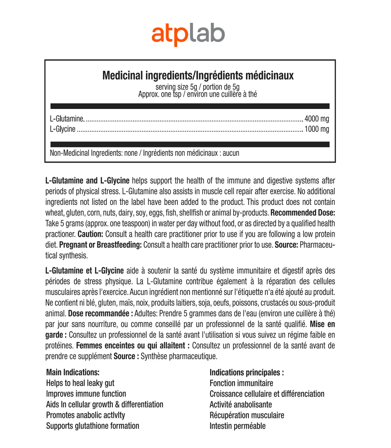 ATP Laboratories has created a formula that includes the highest quality combination of glutamine and glycine on the market. While glycine helps convert glucose into energy, glutamine is the main source of energy for the cells of the intestinal mucosa.