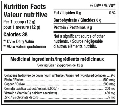 Each 12g serving provides 9g of protein from collagen, with no sugars, no fat, and no carbohydrates. Ideal for a natural beauty routine, this product is non-GMO, gluten-free, dairy-free , and paleo-friendly.