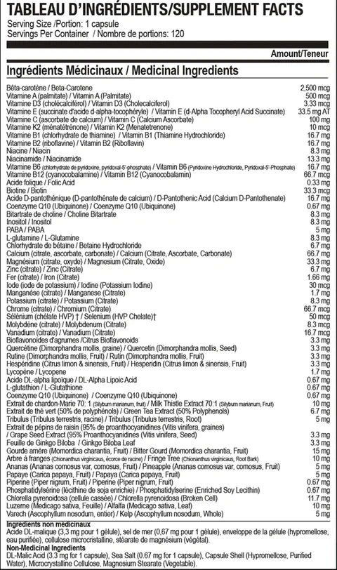Nova Pharma 's Multi Homme 2.0 is an advanced multivitamin designed for the specific needs of modern men: more energy, less fatigue, improved stress, enhanced immunity, and optimal recovery. Its synergistic formula includes essential vitamins, chelated minerals, plant extracts, antioxidants, adaptogens, and powerful metabolic cofactors.