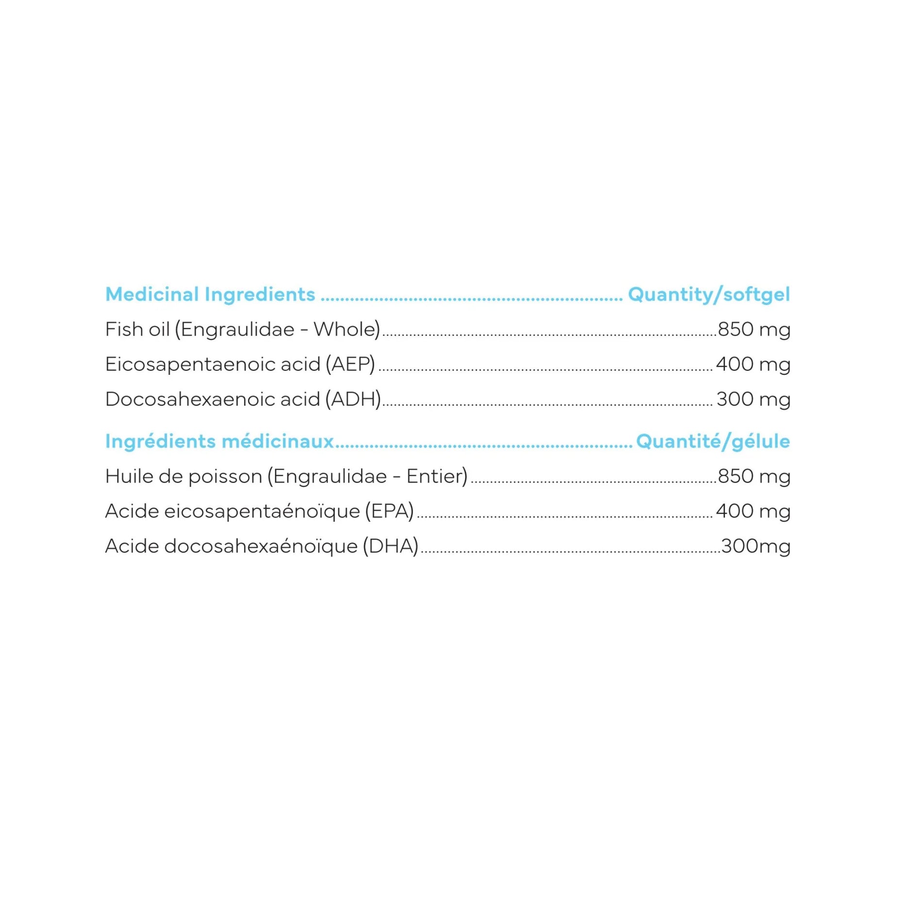 Fish oil (Engraulidae – whole): 850 mg
