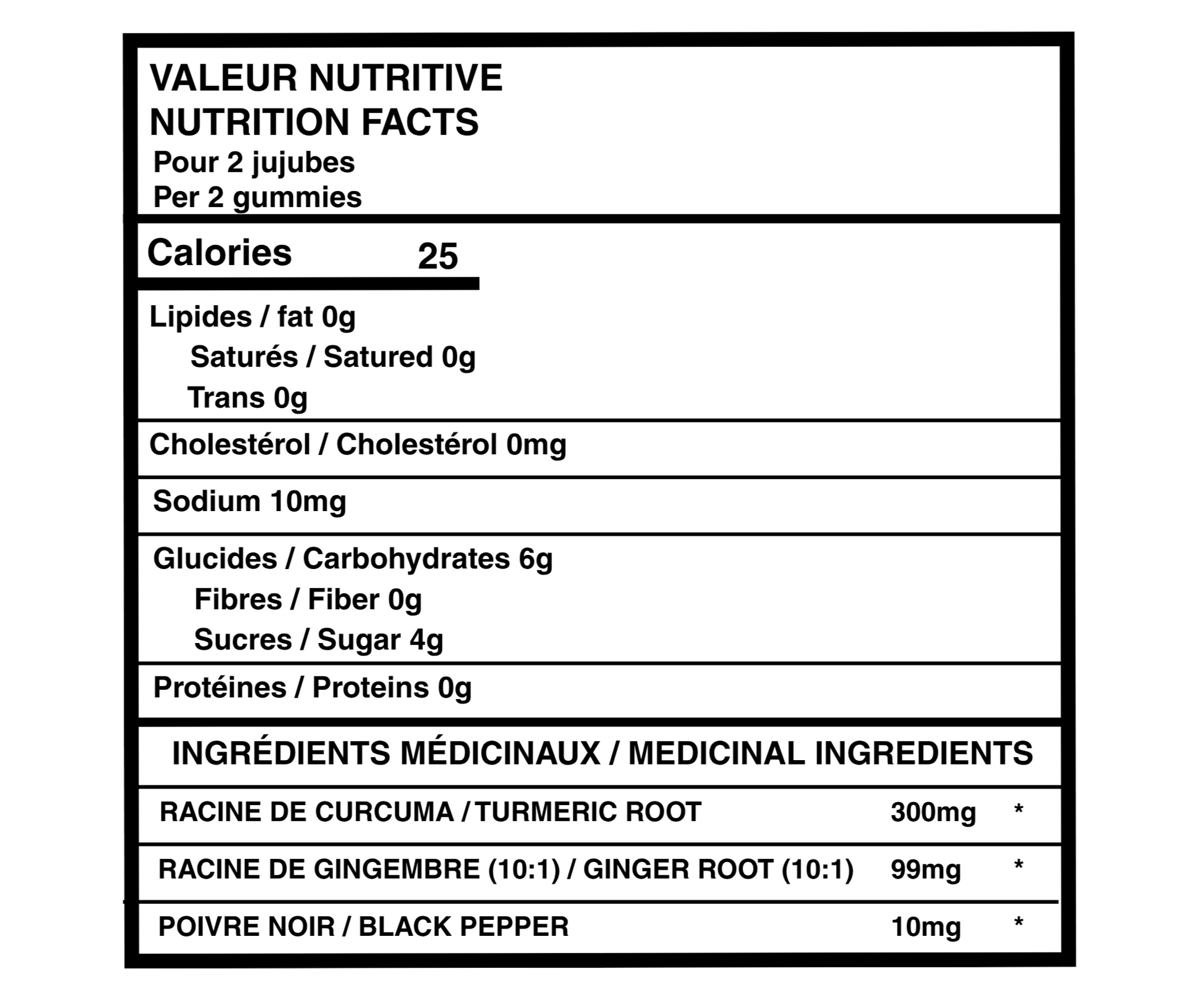 XTREM 's CURMASTAR is a natural supplement in the form of jujubes, specially formulated to relieve joint pain, reduce chronic inflammation and improve digestion. Each serving combines 300 mg of turmeric root , 99 mg of ginger 10:1 and 10 mg of black pepper for optimal absorption.