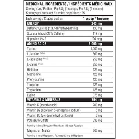 Mode d’emploi : Mélanger 1 scoop dans 250-400 ml d’eau froide. Consommer en début de journée, avant l’entraînement ou en période de baisse d’énergie.